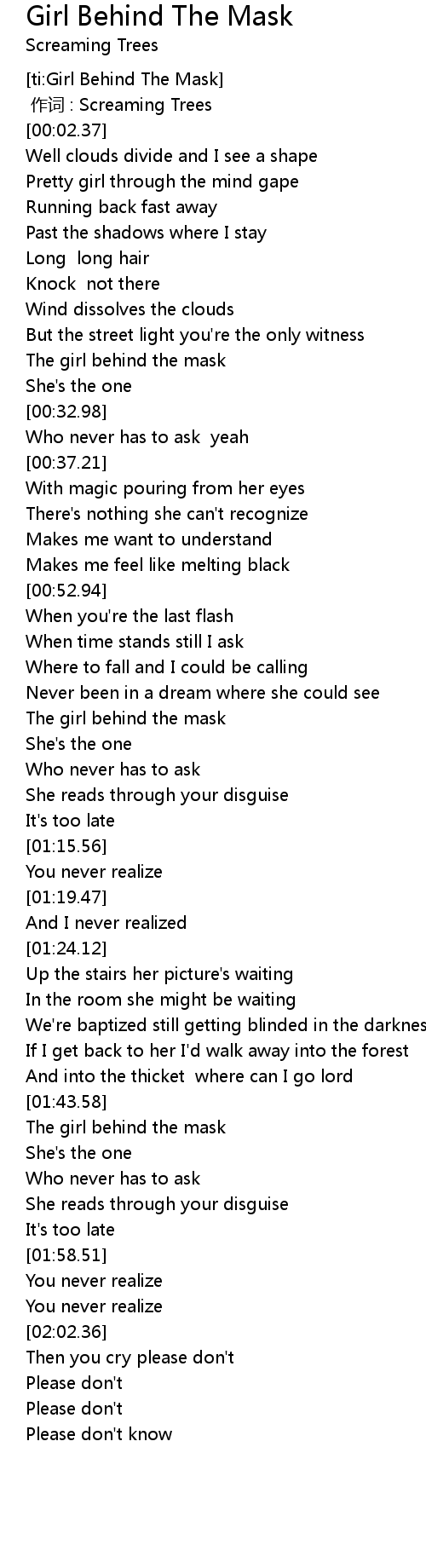| [01:36.31] | If I get back to her I'd walk away into the forest |