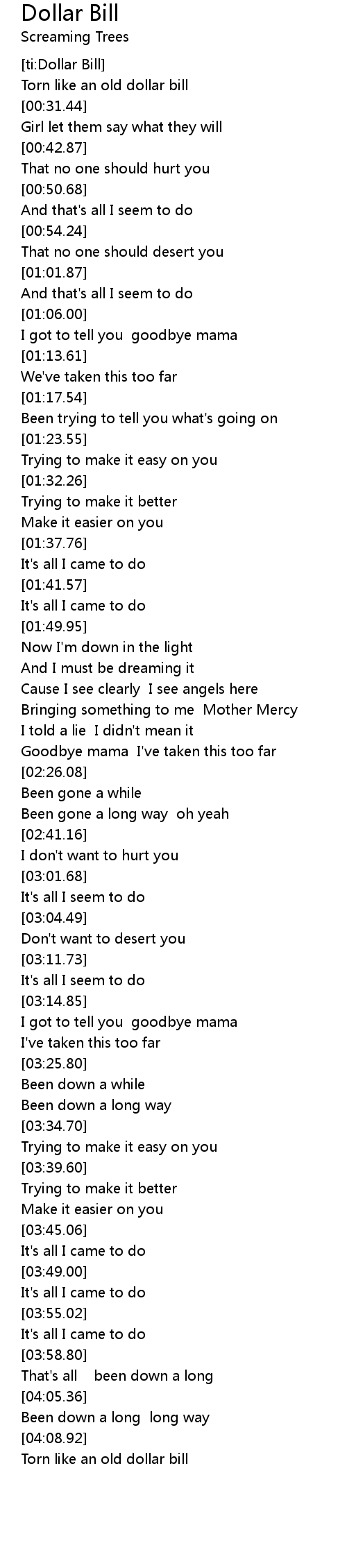 [ti:Dollar Bill] |