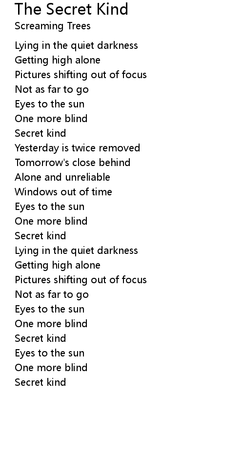 | Song | The Secret Kind |