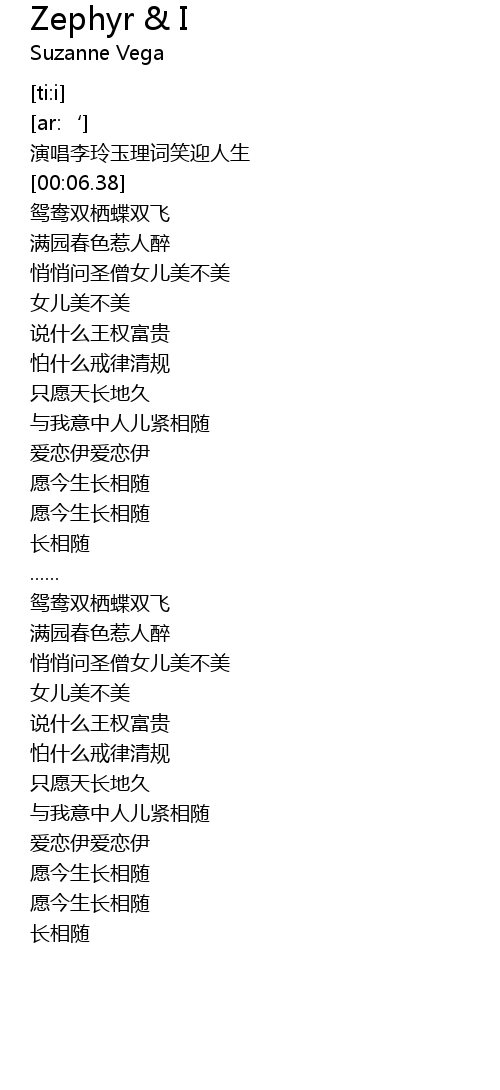 | [00:00.725] | yan chang li ling yu li ci xiao ying ren sheng |