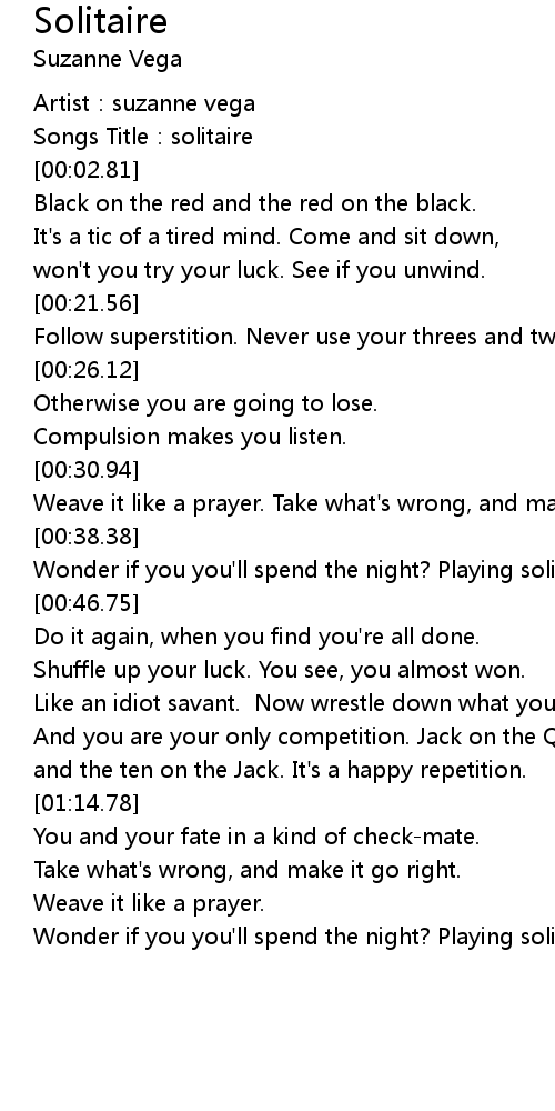 | [00:01.69] | Songs Title:solitaire |