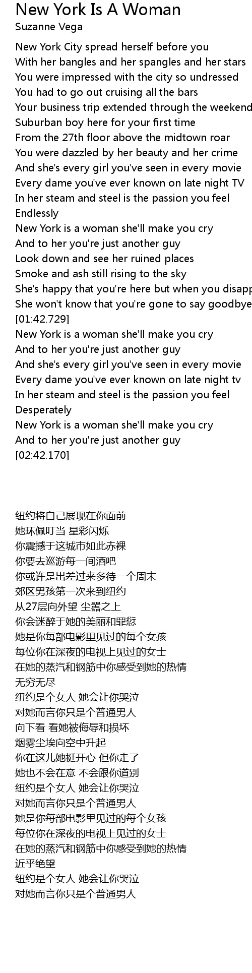 | [02:34.300] | New York is a woman she' ll make you cry |