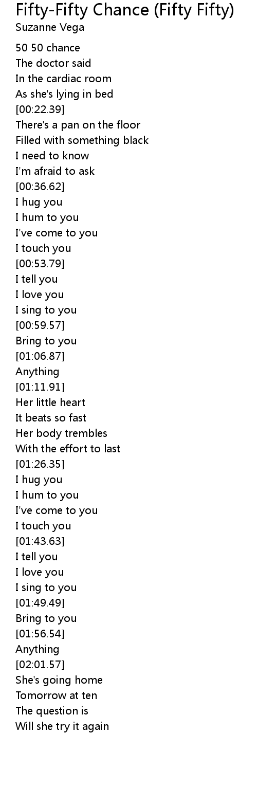 | Song | Fifty-Fifty Chance (Fifty Fifty) |