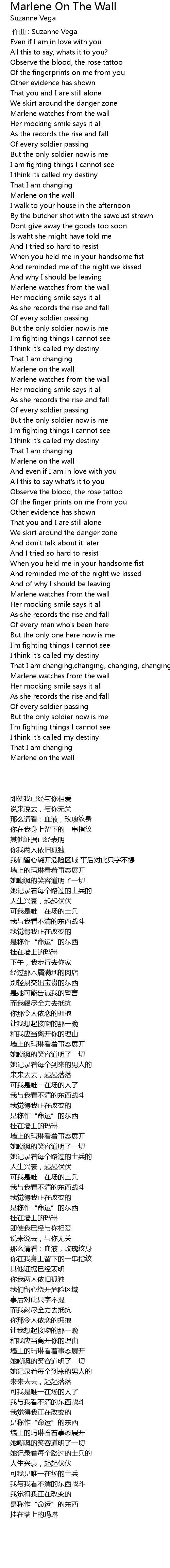 | [00:39.85] | Marlene on the wall |