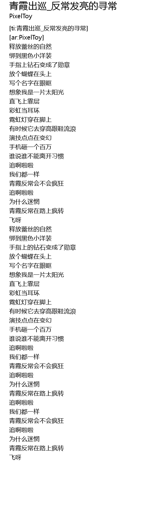 | [ti:青霞出巡_反常发亮的寻常] | |