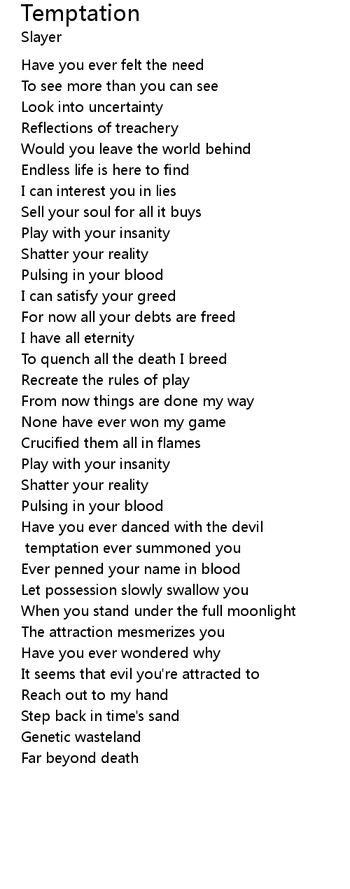 His [sings 'Has'] temptation ever summoned you |
