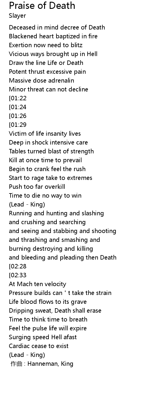 | [05:00][01:26][00:42] | Praise of Death life s a dream |