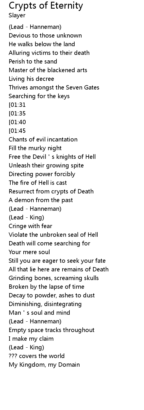 | [02:34][01:40] | Robbed the crypts of Death s eternity |