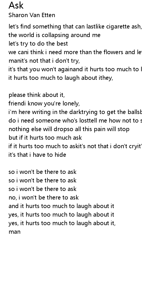| if it hurts too much to askit' s not that i don' t cryit' s that i have to hideyeah, | |