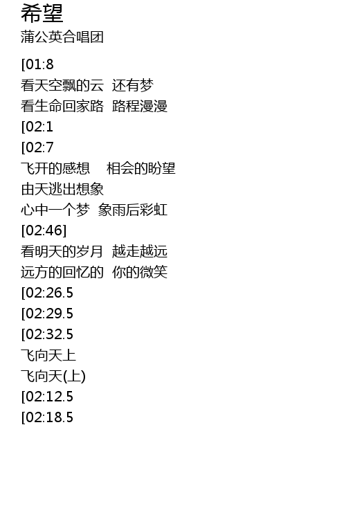 [01:1.5][02:32.5] xī wàng de chì bǎng yì tiān zhōng zhāng kāi