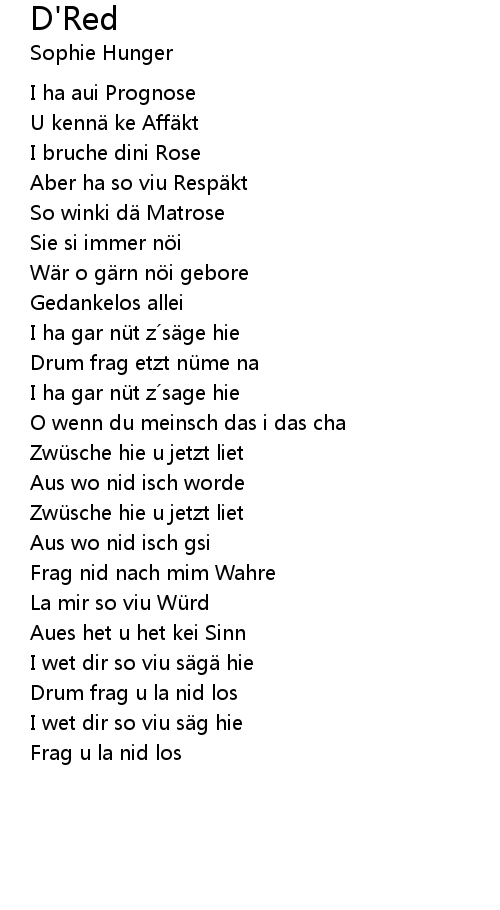 | Drum frag etzt nü me na | |