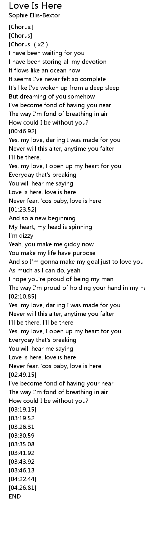 | [04:17.41][03:46.13] | Love is here, love is here |