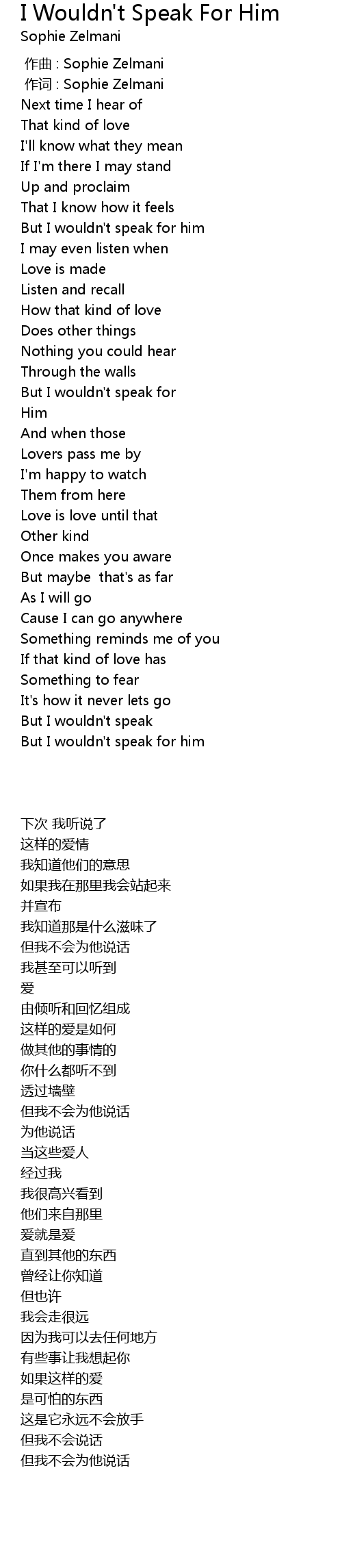 | [00:01.00] | 作词 : Sophie Zelmani |