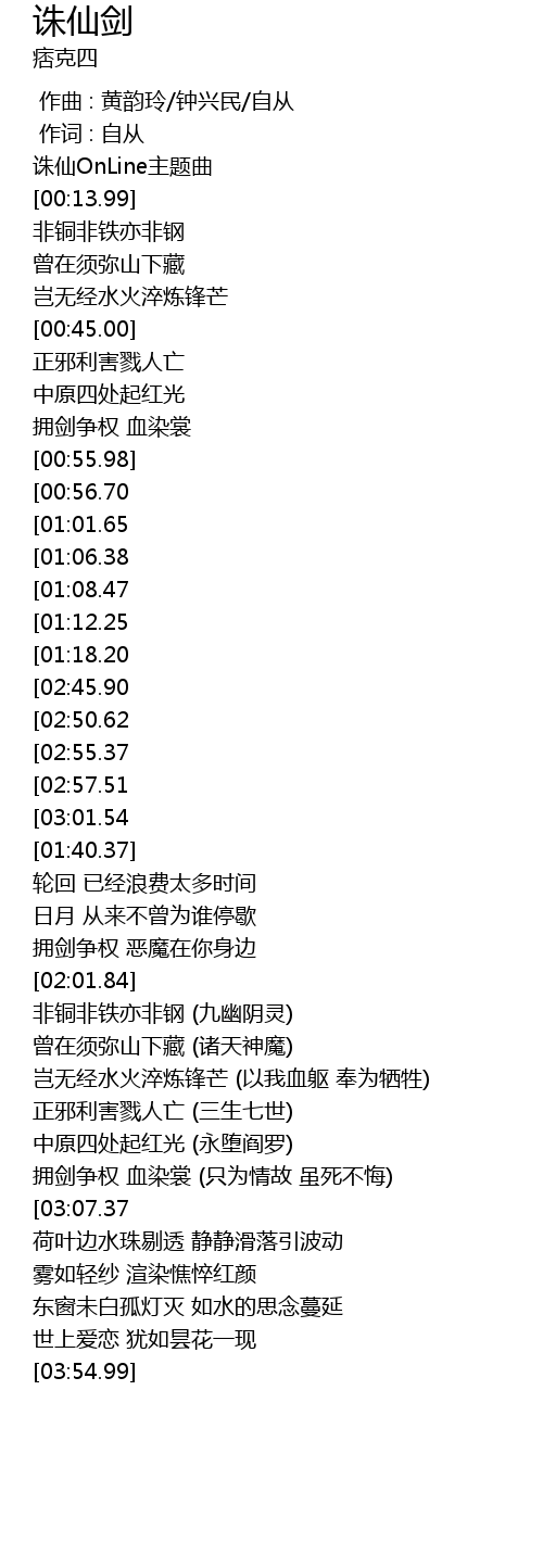 | [02:33.61][01:06.38] | 诛仙剑悬门 |