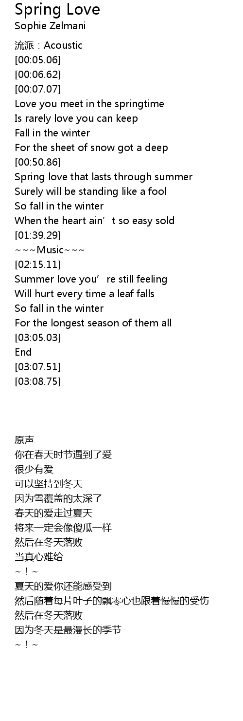 | [00:08.42] | Love you meet in the springtime |