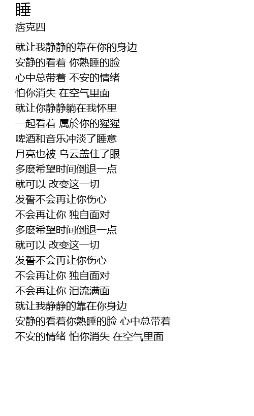 | [00:17.900] | 安静的看着 你熟睡的脸 |