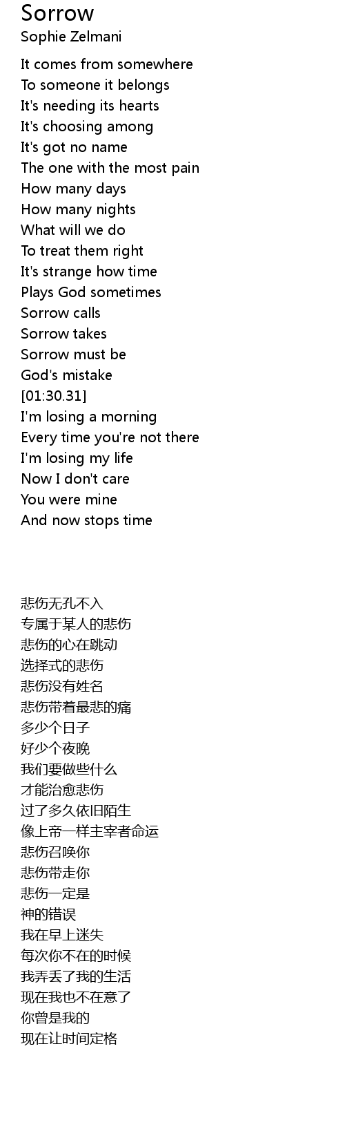| [01:19.57] | Sorrow calls |