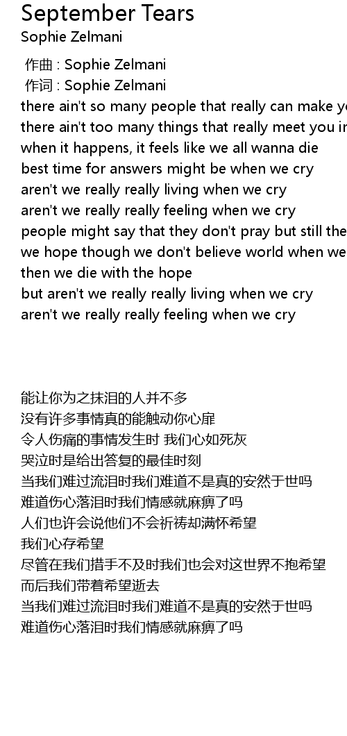 | [01:12.90] | aren' t we really really feeling when we cry |