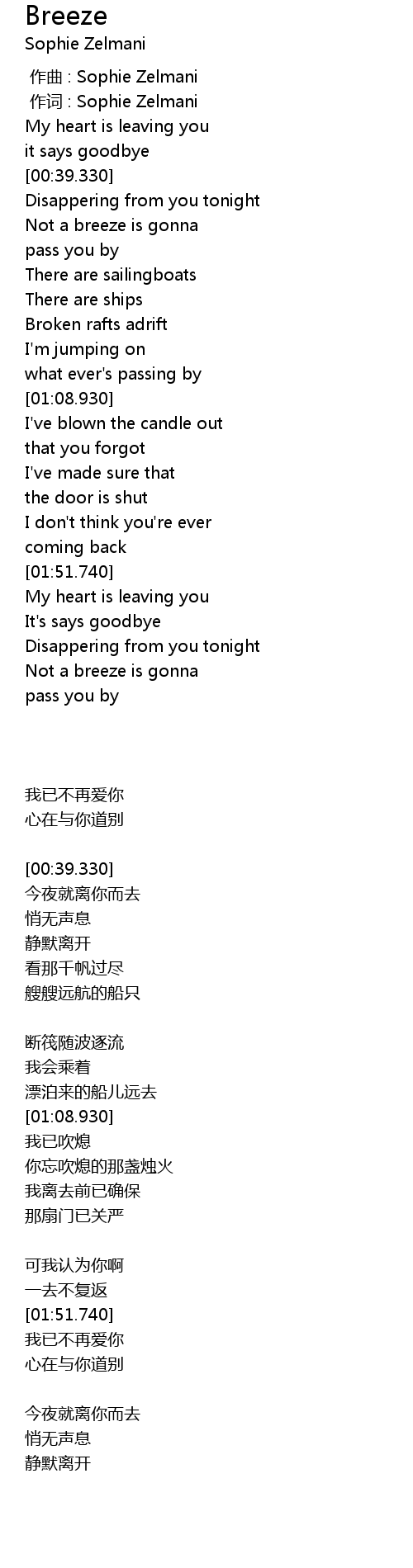 | [00:00.00] | 作曲 : Sophie Zelmani |