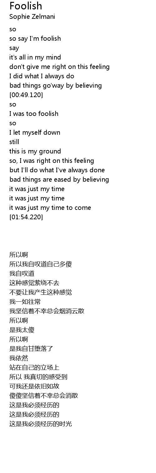 | [00:21.640] | so say I' m foolish |