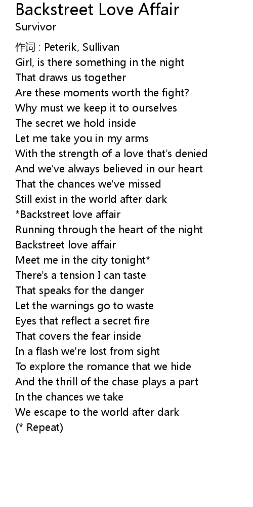 | Backstreet love affair | |
