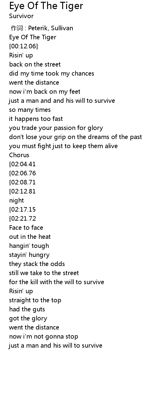 | [02:48.44][02:04.41][01:25.20] | It' s the eye of the tiger |