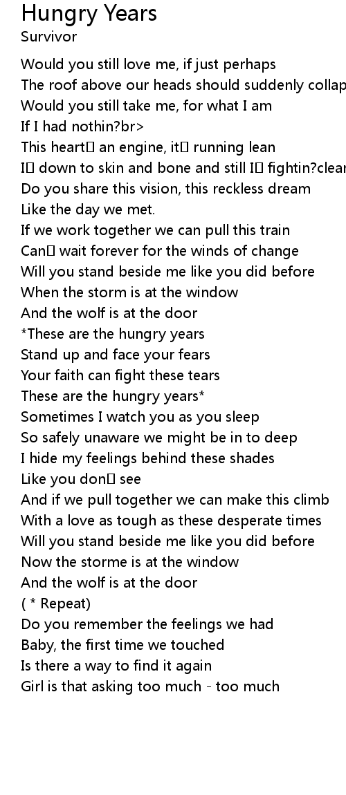 | Song | Hungry Years |