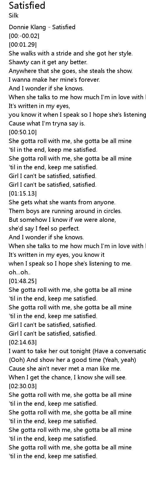 | [02:34.42] | 'til in the end, keep me satisfied. |