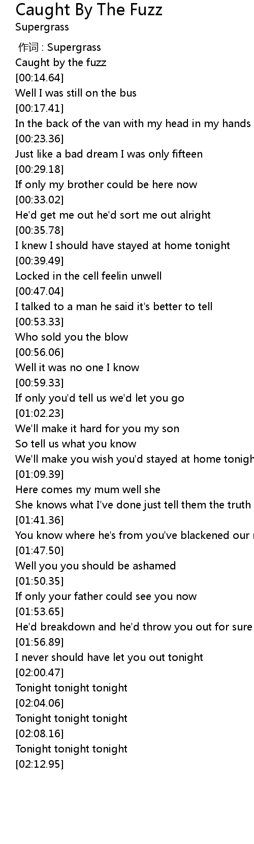 | [01:37.57] | She knows what I've done just tell them the truth |