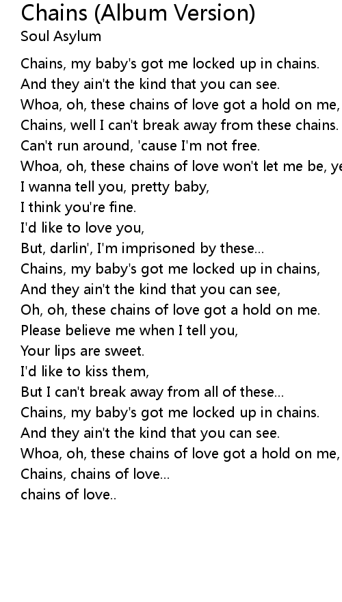 Chains, my baby's got me locked up in chains. |