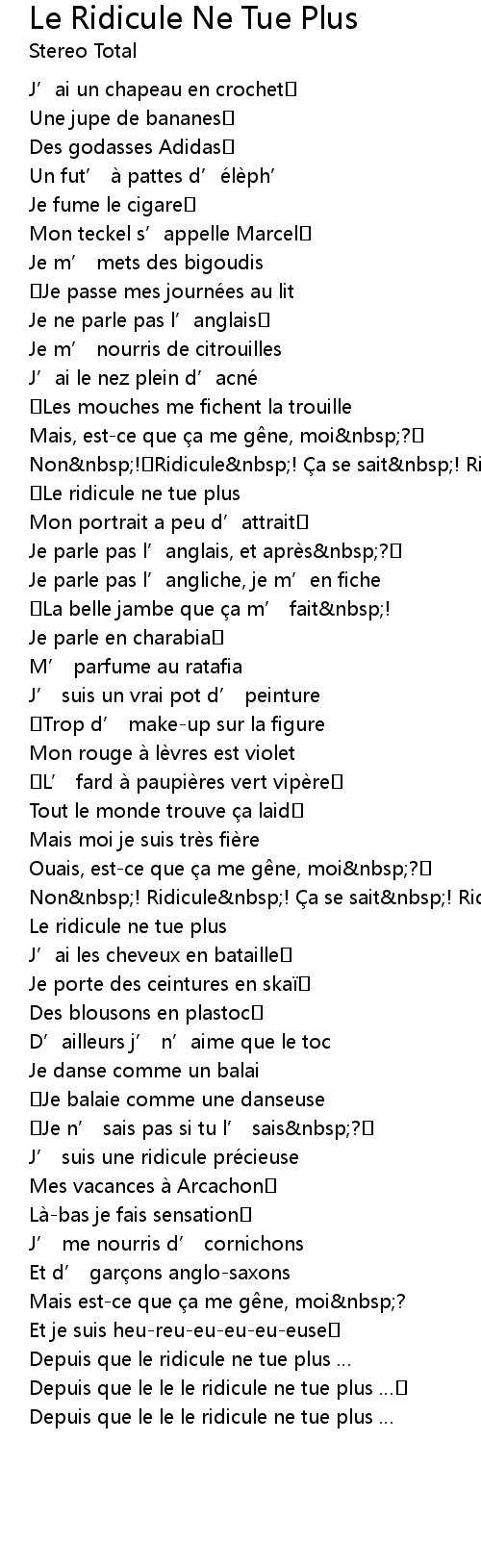 | Non nbsp! Ridicule nbsp! a se sait nbsp! Ridicule nbsp! | |