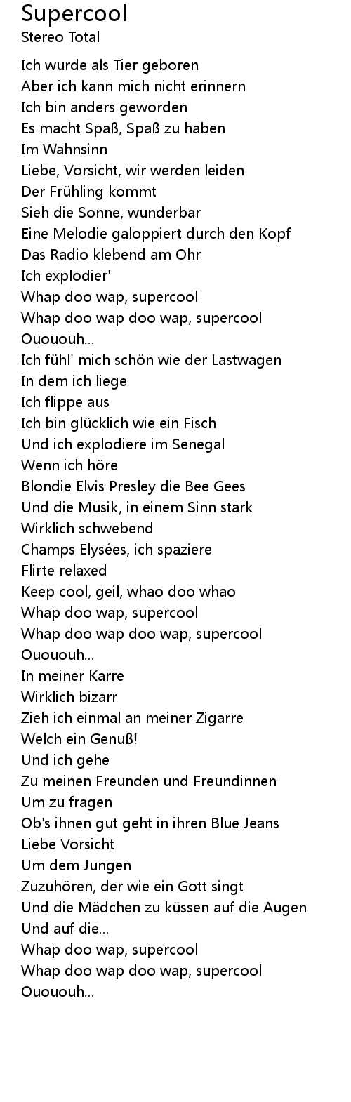 | Keep cool, geil, whao doo whao | |