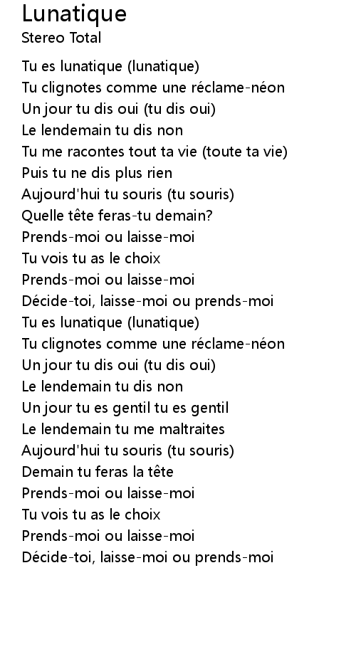 | Tu me racontes tout ta vie (toute ta vie) | |