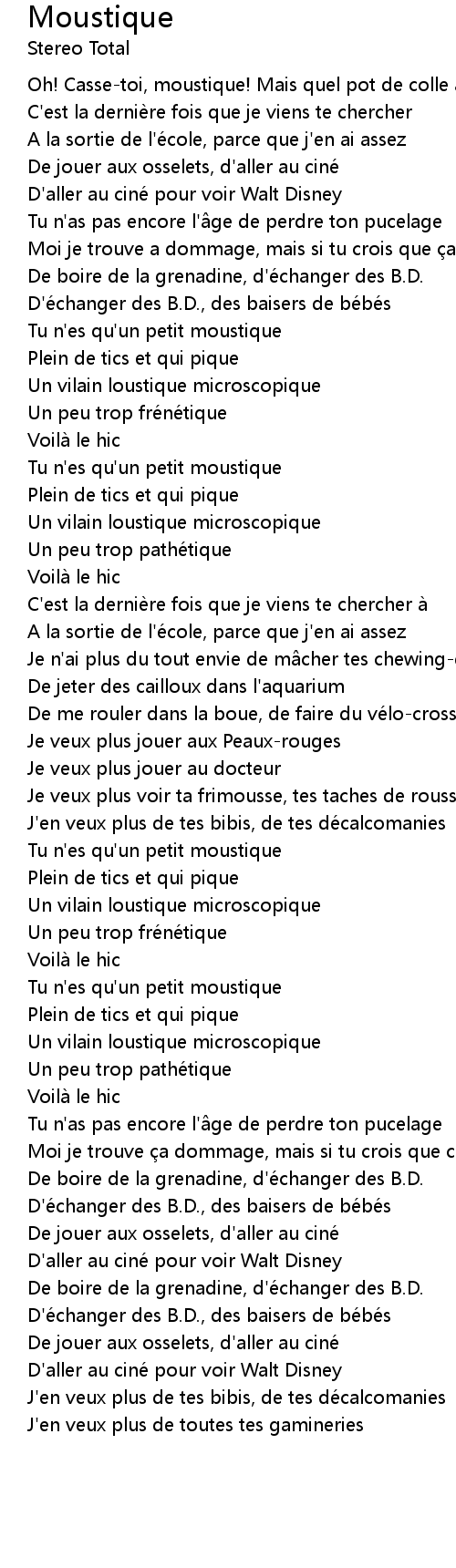 | J'en veux plus de tes bibis, de tes décalcomanies | |