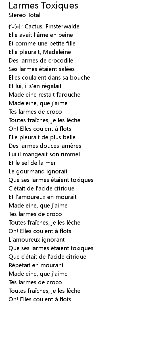 | Que ses larmes e taient toxiques | |