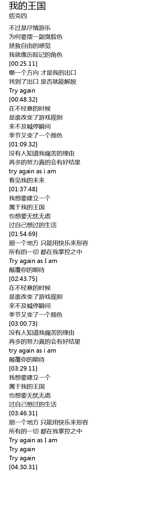 | [01:41.70] | shǔ yú wǒ de wáng guó |