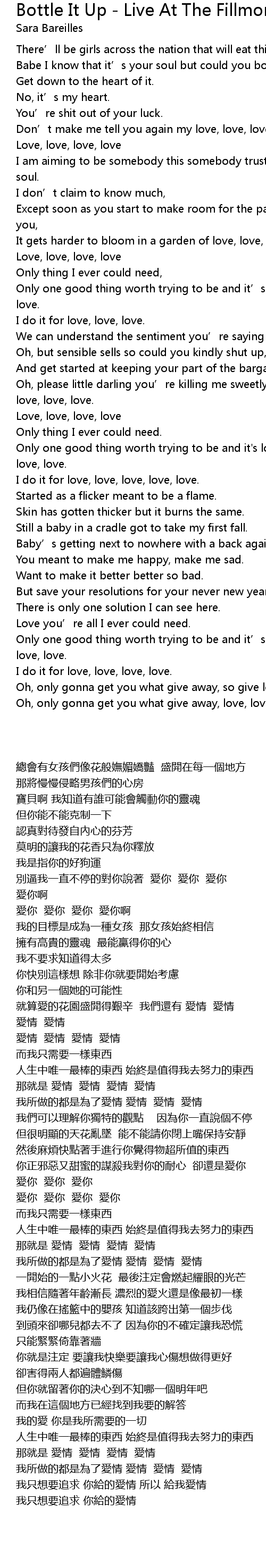 | [03:50.820] | Oh, only gonna get you what give away, so give love, so give love. |