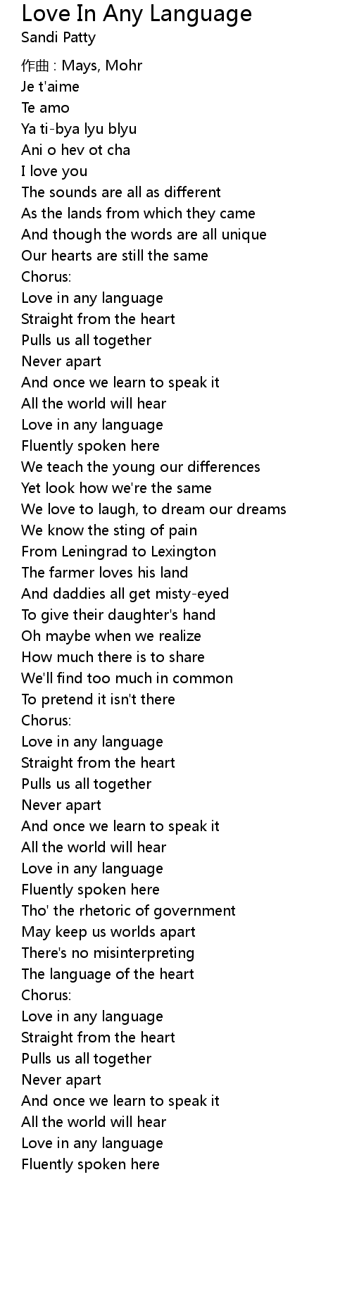| Song | Love In Any Language |