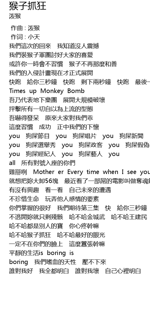 | [01:19.192] | 雞掰咧 Mother er Every time when I see you |