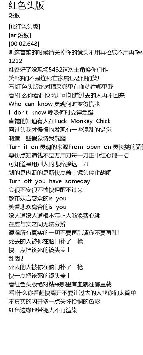 | [02:58.842] | 看红色头版绝对精采哪里有血就往哪里栽 |