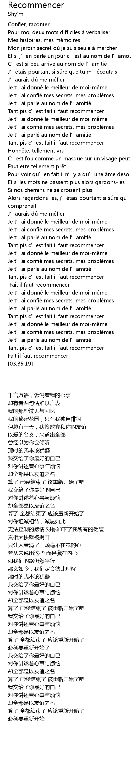 | [03:23.12] | Tant pis c' est fait il faut recommencer |