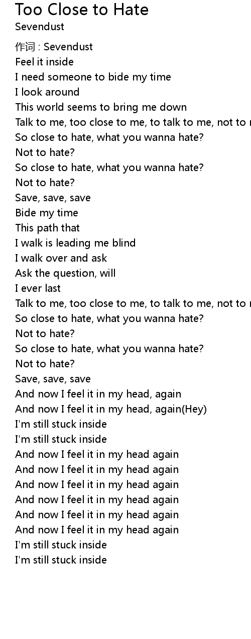 | Song | Too Close to Hate |
