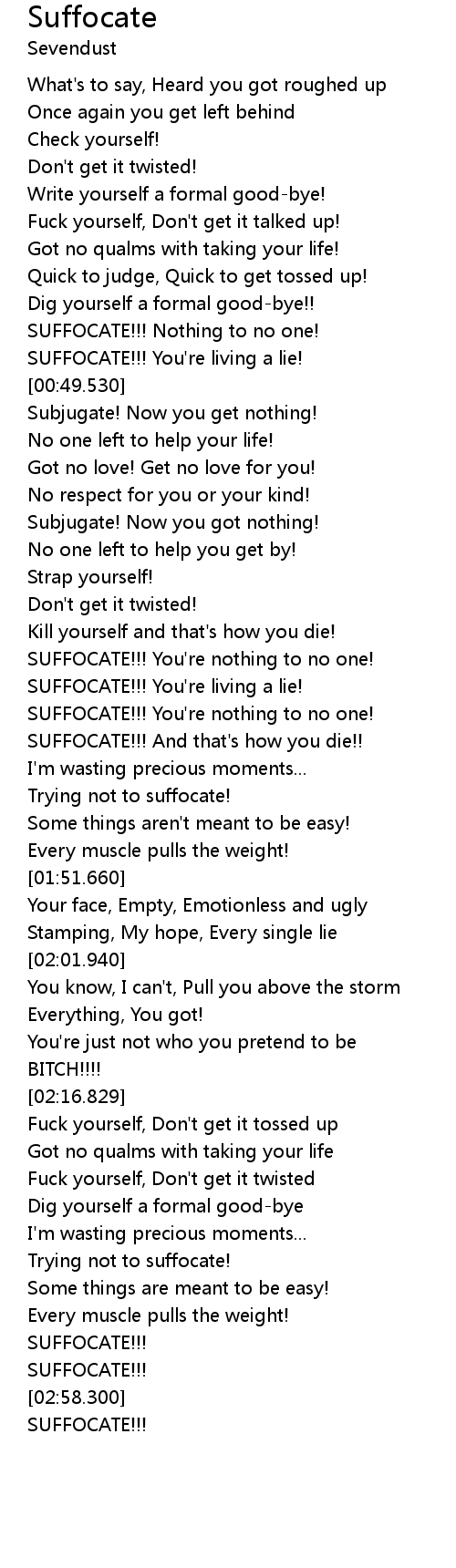 | [00:44.630] | SUFFOCATE!!! You' re living a lie! |