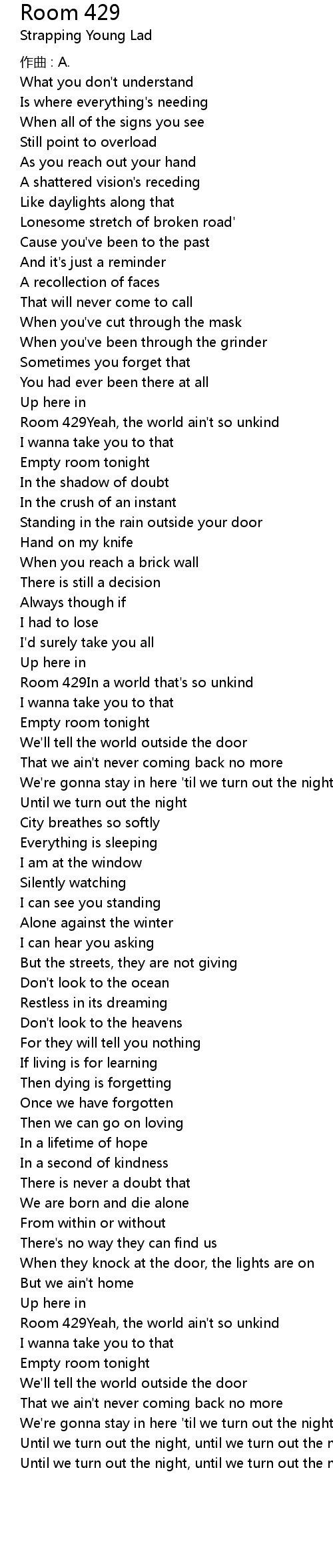 | Room 429In a world that' s so unkind | |