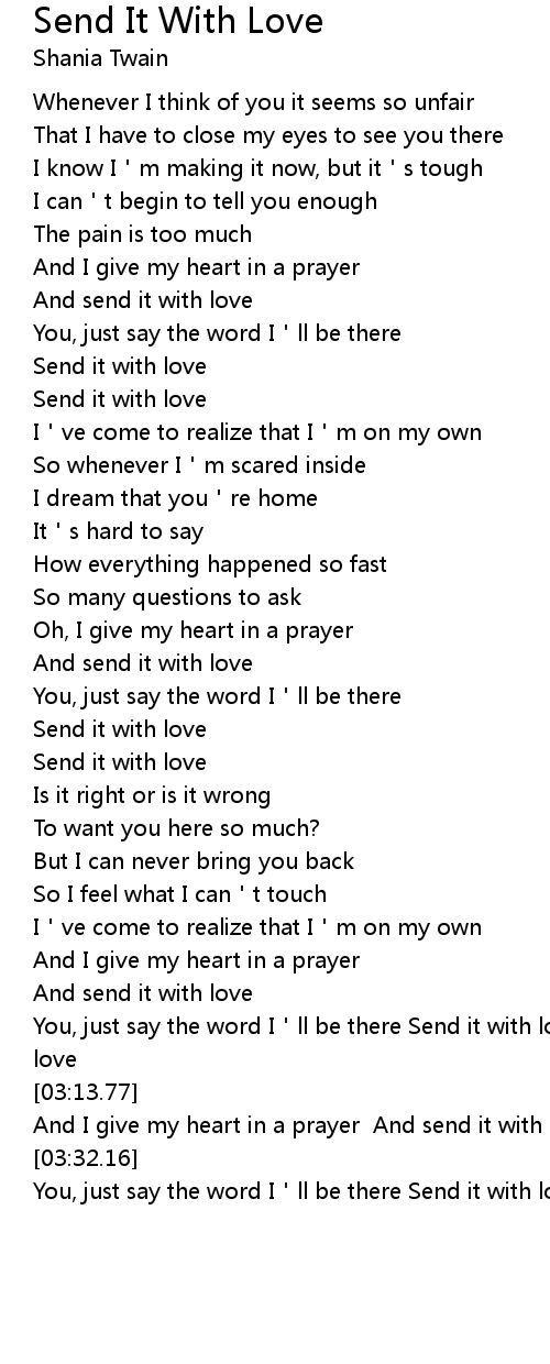 | [03:08.70] | You, just say the word I ll be there Send it with love Send it with love |