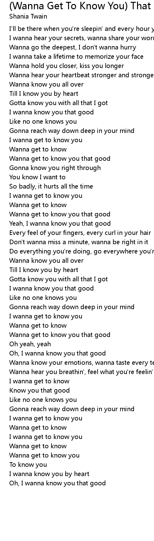 (Wanna Get To Know You) That Good! - Red Album Version Lyrics