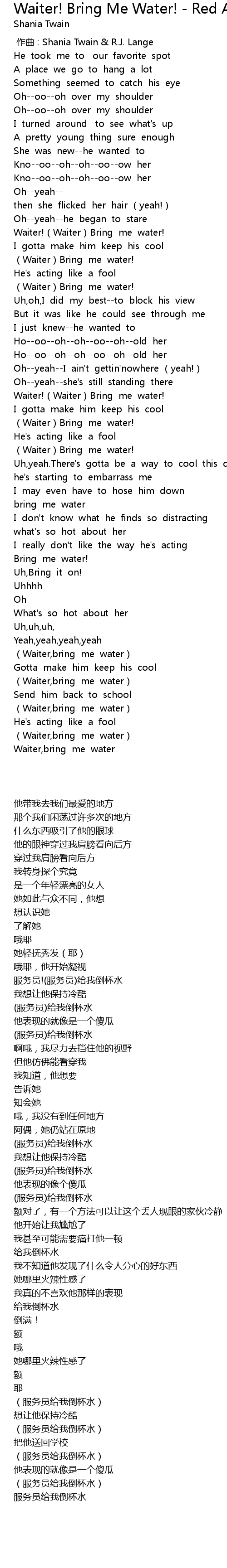 | [01:35.199] | Waiter!(Waiter)Bring me water! |