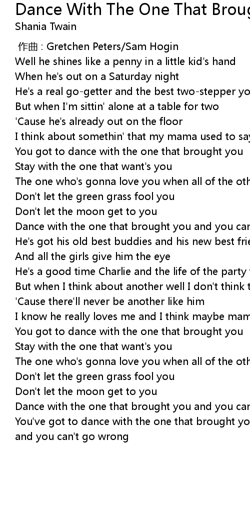 | [01:54.08] | Dance with the one that brought you and you can't go wrong |