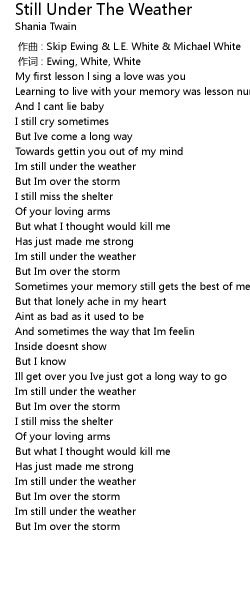 | [02:33.37] | Im still under the weather |