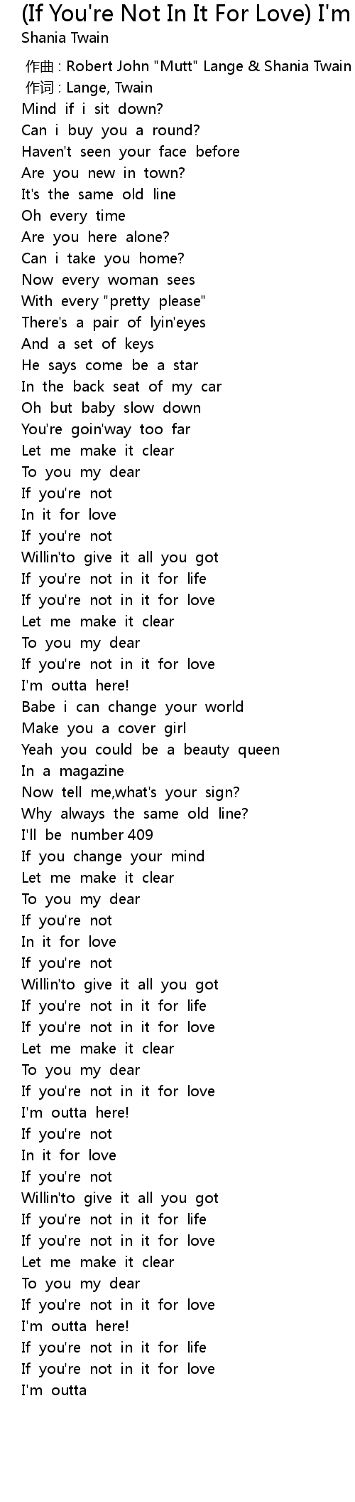 | [00:00.00] | 作曲 : Robert John "Mutt" Lange & Shania Twain |